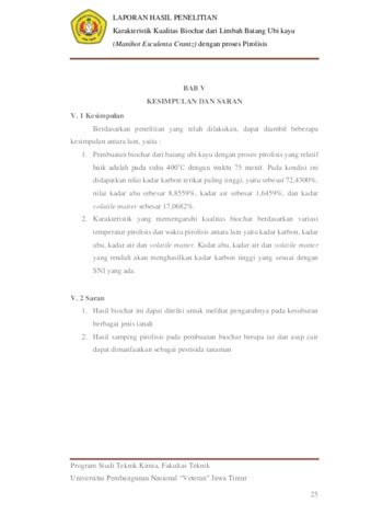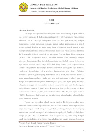 Dwitama, Santa Kristi (2023) Karakteristik Kualitas Biochar dari Limbah Batang Ubi Kayu (Manihot Esculenta Crantz) dengan Proses Pirolisis. Undergraduate thesis, UPN Veteran Jawa Timur.
