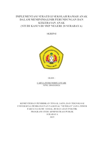 Widiyantari, Cahya Fitri (2025) Implementasi Strategi Sekolah Ramah Anak Dalam Meminimalisir Perundungan Dan Kekerasan Anak (Studi Kasus di SMP Negeri 28 Surabaya). Undergraduate thesis, UPN Veteran Jawa Timur.