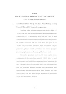 Abstrak : Perkembangan hukum ketenagakerjaan di Indonesia pasca Undang-Undang cipta kerja memang berdampak pada seluruh industri di Indonesia. Kedudukan pekerja Alih daya atau Outsourcing adalah salah satu dari sektor yang terdampak atas perkembangan ini. Dimana sebelumnya sistem outsourcing sudah diatur sedemikian rupa pada Undang- Undang Ketenagakerjaan sesuai dengan kapasitas dan kemampuan suatu perusahaan dan pekerja. Namun, disisi lain permasalahan pemenuhan hak dan kewajiban tetap mejadi kendala utama dalam dunia industri di berbagai era khususnya pada pekerja Alih daya atau outsourcing. Penilitian ini bertujuan untuk mengetahui kedudukan hukum pekerja Alih daya atau outsourcing baik dalam Undang-Undang Ketenagakerjaan maupun Pasca Undang-undang Cipta Kerja. Metode yang digunakan penelitian ini adalah metode penelitian hukum normatif yang didukung dengan pendekatan kasus dan pendekatan perundangundangan. Hasil dari penelitian ini adalah menunjukan bagaimana kedudukan hukum bagi pekerja alih daya baik pada Undang-undang Ketenagakerjaan dan Undang-undang Cipta Kerja. Kata Kunci : Kedudukan Hukum, Alih daya, Hak dan Kewajiban