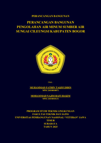 Taqiyuddin, Muhammad Fathin and Hakim, Mohammad Najmi Rafi (2025) Perancangan Bangunan Pengolahan Air Minum Sumber Air Sungai Cileungsi Kabupaten Bogor. Undergraduate thesis, UPN "Veteran" Jawa Timur.