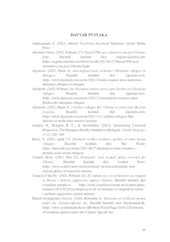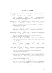 Momentum Perang Rusia-Ukraina pada tahun 2022 telah menyebabkan krisis pengungsi besar. Jutaan penduduk Ukraina meninggalkan negaranya untuk mencari tempat aman di wilayah lain, khususnya di wilayah Eropa. Sehubungan dengan itu, Pemerintah Uni Eropa (UE) mengaktifkan Temporary Protection Directive (TPD) untuk membantu warga Ukraina yang mengungsi di negara-negara UE. Mayoritas negara telah melakukan penyesuaian terhadap kebijakan luar negerinya untuk merespons hal tersebut, salah satunya adalah Denmark. Meskipun dikenal sebagai negara yang tidak ramah pengungsi dengan menargetkan Zero Asylum, Denmark menjadi sangat terbuka dalam menerima pengungsi dari Ukraina. Pemerintah Denmark mengesahkan Special Act on Displaced Person From Ukraine untuk mengatur skema penerimaan pengungsi Ukraina. Penelitian ini bertujuan untuk menjelaskan faktor-faktor yang mempengaruhi perubahan kebijakan luar negeri Denmark, dari Zero Asylum menjadi terbuka secara khusus untuk warga Ukraina dalam Special Act on Displaced Persons From Ukraine tahun 2021-2024. Penelitian ini menggunakan Foreign Policy Change Theory oleh Eidenfalk untuk menganalisis kategori sumber perubahan domestik dan internasional, serta windows of opportunity dalam mendorong terjadinya perubahan kebijakan. Hasil penelitian menunjukkan bahwa sumber perubahan dari sisi domestik, diantaranya: (1) dukungan publik Denmark yang kuat terhadap pengungsi Ukraina; (2) narasi media mengenai solidaritas Eropa; (3) tekanan dari pemerintah daerah (municipalities); (4) advokasi dari Danish Institute for Human Rights; dan (5) dukungan politik yang luas dari partai-partai di parlemen Denmark. Sementara dari sisi internasional, pengaruhnya meliputi: (1) krisis pengungsi global; (3) tekanan dari Uni Eropa untuk mengadopsi TPD; (3) kerja sama bilateral Denmark-Ukraina; dan (4) rekomendasi dari UNHCR terkait kelompok pengungsi yang dianggap rentan. Perubahan kebijakan luar negeri Denmark disebabkan oleh sumber-sumber perubahan domestik dan internasional, yang kemudian dipetimbangkan Mette Frederiksen oleh Key-Decision Makers menurut dalam persepsinya, hingga akhirnya memunculkan Windows of Opportunity untuk merealisasi perubahan. Kata Kunci: Analisis Kebijakan Luar Negeri, Imigrasi Denmark, Undang-Undang Khusus, Pengungsi Ukraina