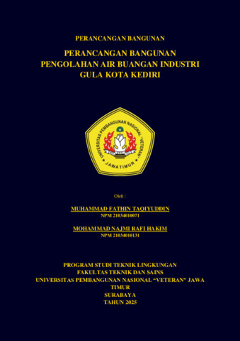 Hakim, Mohammad Najmi Rafi and Taqiyuddin, Muhammad Fathin (2025) Perancangan Bangunan Pengolahan Air Buangan Industri Gula Kota Kediri. Undergraduate thesis, UPN "Veteran" Jawa Timur.
