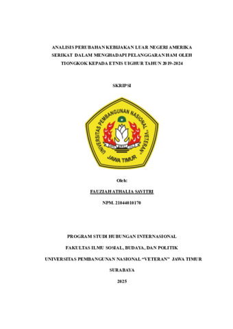Savitri, Fauziah Athalia (2025) ANALISIS PERUBAHAN KEBIJAKAN LUAR NEGERI AMERIKA SERIKAT DALAM MENGHADAPI PELANGGARAN HAM OLEH TIONGKOK KEPADA ETNIS UIGHUR TAHUN 2019-2024. Undergraduate thesis, Universitas Pembangunan Nasional "Veteran" Jawa Timur.
