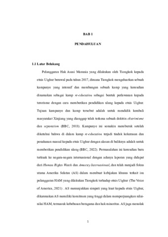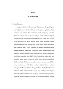 Kemunculan isu pelanggaran HAM yang dilakukan oleh Tiongkok terhadap etnis Uighur di Xinjiang telah menjadi perhatian khusus di dunia internasional. Isu ini mencuat setelah adanya laporan yang dikeluarkan oleh Human Rights Watch dan Amnesty Internasional yang menyatakan banhwa Tiongkok membangun kamp re-education kepada etnis Uighur dengan tujuan untuk mencegahan ekstremisme Islam di Tiongkok. Di dalam kamp re-education, etnis Uighur mengalami penahanan massal, hingga kekerasan yang melanggar prinsip-prinsip HAM. Menanggapai hal ini, AS menjadi negara yang secara tegas menyuarakan kritik dan mengambil keputusan dengan mengeluarkan kebijakan luar negeri guna menghentikan pelanggaran HAM Uighur. Meskipun demikian, pada masa kepemimpinan Donald Trump, implementasi kebijakan Uighur Human Rights Policy Act mengalami hambatan karena adanya pertimbangan strategis dengan Tiongkok, yang menjadikan adanya penundaan pemberian sanksi kepada Tiongkok. Hasil penelitian ini menemukan bahwa memasuki masa kepemimpinan Joe Biden, kebijakan luar negeri mengalami perubahan mulai dari nama hingga isinya yang menjadi kebijakan Uyghur Forced Labor Prevention Act yang berfokuskan pencegahan hasil produksi barang yang hasilkan dari kerja paksa etnis Uighur. Argumen penelitian ini dirumuskan melalui tahapan analisis dengan metode eksplanatif, dan menggunakan data sekunder yang didapat melalui jurnal, artikel, dan situs resmi AS, Human Rights Watch, Amnesty Internasional, OHCHR. Kata Kunci: AS, Etnis Uighur, Kebijakan Luar Negeri, Pelanggaran HAM, Tiongkok