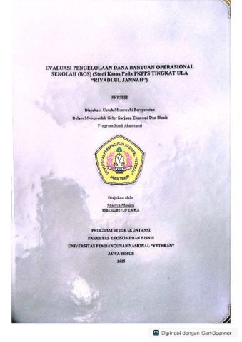 Monica, Shintya (2025) EVALUASI PENGELOLAAN DANA BANTUAN OPERASIONAL SEKOLAH (BOS) (Studi Kasus Pada PKPPS TINGKAT ULA “RIYADLUL JANNAH”). Undergraduate thesis, UPN "Veteran" Jawa Timur.
