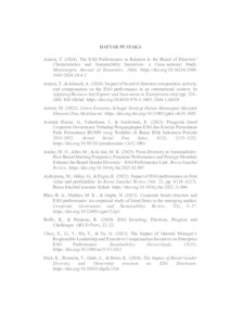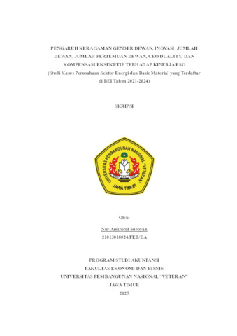 Suroyah, Nur Amirotul (2025) PENGARUH KERAGAMAN GENDER DEWAN, INOVASI, JUMLAH DEWAN, JUMLAH PERTEMUAN DEWAN, CEO DUALITY, DAN KOMPENSASI EKSEKUTIF TERHADAP KINERJA ESG (Studi Kasus Perusahaan Sektor Energi dan Basic Material yang Terdaftar di BEI Tahun 2021-2024). Undergraduate thesis, Universitas Pembangunan Nasional Veteran Jawa Timur.