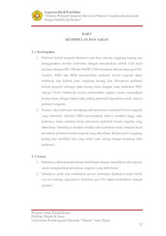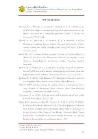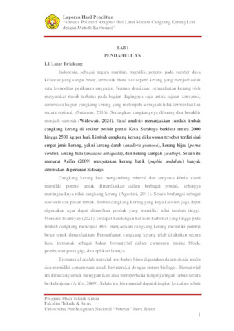 Hadi, Prasetyo and Hidayah, Wahyu (2025) SINTESIS POLIMORF ARAGONIT DARI LIMA MACAM CANGKANG KERANG LAUT DENGAN METODE KARBONASI. Undergraduate thesis, UPN Veteran Jawa Timur.