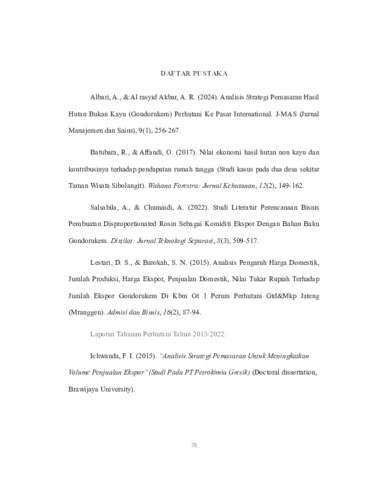 Setiyaningtyas, Dwi (2025) Analisis Strategi Pemasaran Internasional Yang Dilakukan Oleh Perhutani Terhadap Ekspor Produk Gondorukem Tahun 2013-2022. Undergraduate thesis, UPN Veteran Jawa Timur.