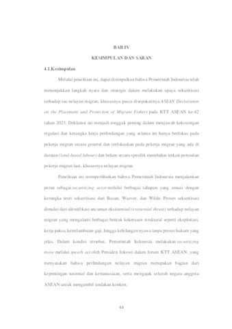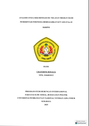 Rosalia, Chaterine (2025) ANALISIS UPAYA SEKURITISASI ISU NELAYAN MIGRAN OLEH PEMERINTAH INDONESIA BERDASARKAN KTT ASEAN ke-42. Undergraduate thesis, UPN Veteran Jawa Timur.
