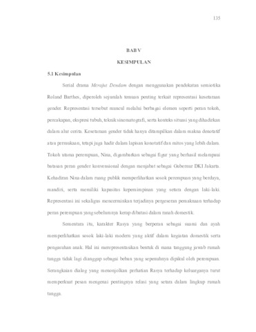 Gender equality is a critical issue in modern society that is often represented through mass media, including television dramas. Merajut Dendam is one of the series that presents a critique of patriarchal culture through its visual narrative and character development. This study aimed to analyze how gender equality was represented in the series using Roland Barthes’ semiotic approach. The research employed a descriptive qualitative method with data collected through visual documentation, then analyzed using Barthes' three levels of meaning: denotation, connotation, and myth. The findings revealed that the series delivered a progressive portrayal of gender roles through female characters who appeared independent and empowered in the public sphere, as well as male characters who contributed to domestic life. The main character, Nina, was depicted as surpassing traditional gender stereotypes by serving as a strong leader, while male characters such as Rasya were shown taking part in caregiving and household responsibilities. The series also presented the transformation of supporting characters, such as Widya, who came to realize the inequalities of gender-biased parenting. In conclusion, Merajut Dendam not only represented the shifting roles of men and women but also conveyed a critical reflection on patriarchy and encouraged audiences to reconsider the importance of gender equality in everyday life. In this context, media functioned not only as a source of entertainment but also as a tool for social education and transformation.