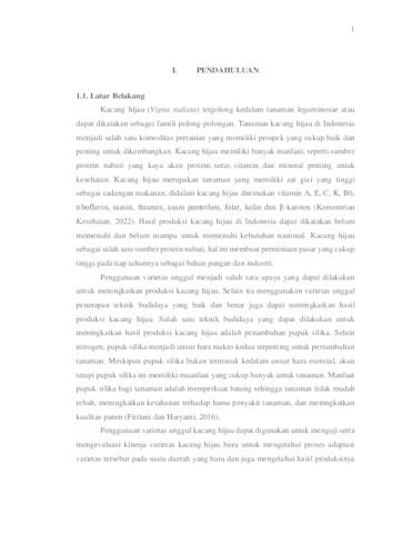 Nurwendah, Miftah Azzura (2025) PENGARUH PEMBERIAN PUPUK SILIKA PADA TIGA VARIETAS KACANG HIJAU (Vigna radiata). Undergraduate thesis, UPN "Veteran" Jawa Timur.