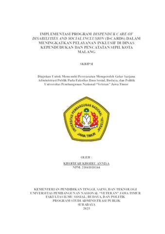 Annisa, Khofifah Khoiru (2025) IMPLEMENTASI PROGRAM DISPENDUK CARE OF DISABILITIES AND SOCIAL INCLUSION (D-CARDS) DALAM MENINGKATKAN PELAYANAN INKLUSIF DI DINAS KEPENDUDUKAN DAN PENCATATAN SIPIL KOTA MALANG. Undergraduate thesis, UPN "VETERAN" JAWA TIMUR.