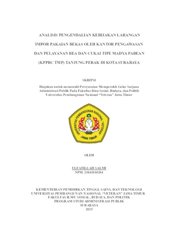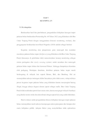 Salmi, Ulfatillah (2025) ANALISIS PENGENDALIAN KEBIJAKAN LARANGAN IMPOR PAKAIAN BEKAS OLEH KANTOR PENGAWASAN DAN PELAYANAN BEA DAN CUKAI TIPE MADYA PABEAN (KPPBC TMP) TANJUNG PERAK DI KOTA SURABAYA. Undergraduate thesis, UPN Veteran Jawa Timur.