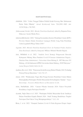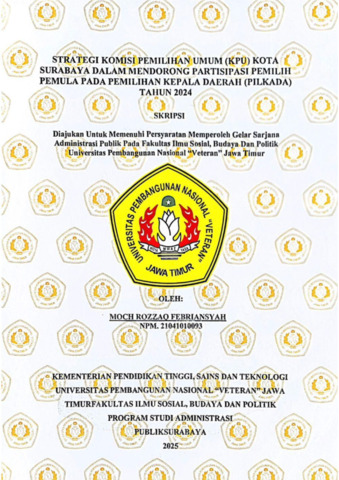 Febriansyah, Moch Rozzaq (2025) Strategi Komisi Pemilihan Umum (KPU) Kota Surabaya Dalam Mendorong Partisipasi Pemilih Pemula Pada Pemilihan Kepala Daerah (Pilkada) Tahun 2024. Undergraduate thesis, UPN Veteran Jawa Timur.