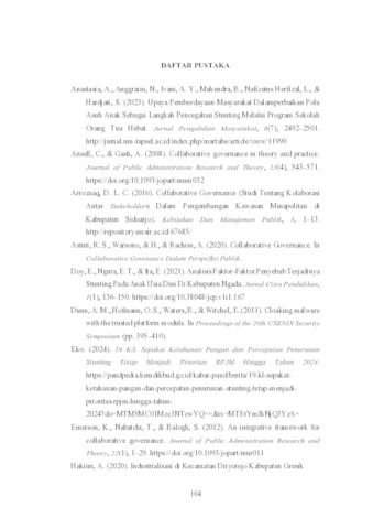 Purwanto, Regina Maulidya Putri (2025) Tata Kelola Collaborative Governance dalam Percepatan Penurunan Angka Stunting di Desa Mojosarirejo Kabupaten Gresik. Undergraduate thesis, Universitas Pembangunan Nasional “Veteran” Jawa Timur.