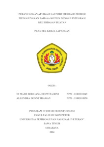 Rini, Ni Made Berliana Deswita and Irawan, Allendra Donny (2025) Perancangan Aplikasi Laundry Berbasis Mobile Menggunakan Bahasa Kotlin Dengan Integrasi Kecerdasan Buatan. Project Report (Praktek Kerja Lapang dan Magang). Ni Made Berliana Deswita Rini, Surabaya. (Unpublished)