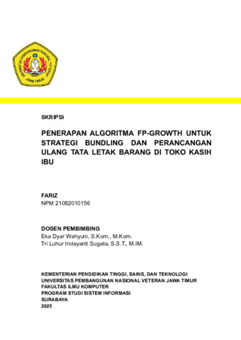 Fariz, Fariz (2025) Penerapan Algoritma FP-Growth untuk Strategi Bundling dan Perancangan Ulang Tata Letak Barang di Toko Kasih Ibu. Undergraduate thesis, UPN Veteran Jawa Timur.