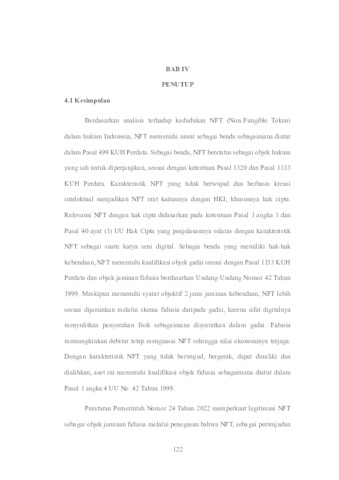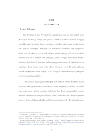 Anggraini, Anastasya Maylan (2025) TINJAUAN YURIDIS KEABSAHAN JAMINAN KEBENDAAN BERBENTUK NON-FUNGIBLE TOKEN SEBAGAI KEKAYAAN INTELEKTUAL BERDASARKAN PERATURAN PEMERINTAH NOMOR 24 TAHUN 2022. Undergraduate thesis, Universitas Pembangunan Nasional "Veteran" Jawa Timur.