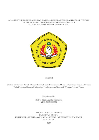 Hariyanto, Rizkya Fitri Ananda (2025) Analisis Yuridis Cerai Gugat Karena Kekerasan Dalam Rumah Tangga (Studi Putusan 126/Pdt.G/2024/PA. Sda dan Putusan Nomor 591/Pdt.G/2024/PA.Sda). Undergraduate thesis, UPN Veteran Jawa Timur.