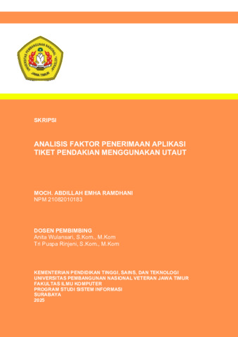 Ramdhani, Moch. Abdillah Emha (2025) Analisis Faktor Penerimaan Aplikasi Tiket Pendakian Menggunakan UTAUT. Undergraduate thesis, UPN Veteran Jawa Timur.