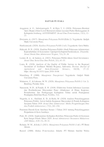 This research aims to provide an in-depth description of the Quality of Parking Services in the Tunjungan Street Tourist Area of Surabaya City. This research uses a qualitative descriptive method. Data obtained through observation, interviews, and documentation. This research uses the service quality theory, which includes reliability, responsiveness, assurance, empathy, and tangibles. The results of this study indicate that out of the five analyzed service quality indicators, several have been well implemented, including the dimensions of responsiveness, assurance, empathy, and tangibles, such as indicators related to the speed of service personnel and the application of polite and friendly attitudes towards service users. However, there are still indicators that have not been fully optimally implemented, particularly in the dimension of reliability, especially regarding the availability of written information on service procedures. Therefore, efforts for improvement and enhancement are needed so that all service quality indicators can be met well according to the established standards. Keywords: Public Service, Parking Service