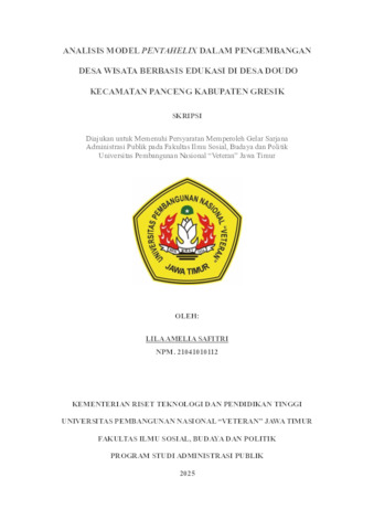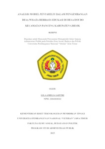 Safitri, Lila Amelia (2025) Analisis Model Pentahelix dalam Pengembangan Desa Wisata Berbasis Edukasi di Desa Doudo Kecamatan Panceng Kabupaten Gresik. Undergraduate thesis, UPN Veteran Jawa Timur.