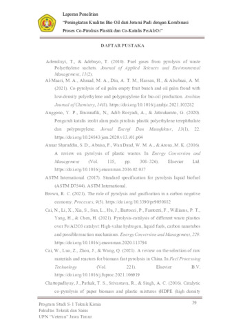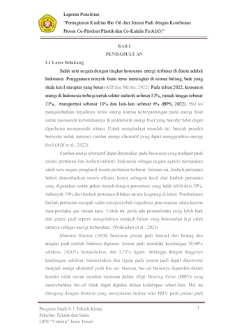 Sirait, Esterly Septiana (2025) Peningkatan Kualitas Bio Oil dari Jerami Padi dengan Kombinasi Proses Co-Pirolisis Plastik dan Co-Katalis Fe/Al2O3. Undergraduate thesis, UPN Veteran Jawa Timur.