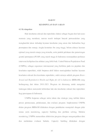 The Better Sexual and Reproductive Health and Rights for All in Indonesia (BERANI) program is a collaborative initiative between the Indonesian government, UNFPA, UNICEF and Global Affairs Canada (GAC). The main objective of this program is to improve the fulfillment of sexual and reproductive health rights for women and girls in Indonesia. In addition, the program also focuses on accelerating the reduction of maternal mortality, ensuring rights-based family planning services, and ensuring the availability of information and services on comprehensive sexual and reproductive health for girls in Indonesia. In its implementation, UNFPA adopts management approach through monitoring, capacity building in the preparation of policies, and problem-solving through UNALA program innovation. In addition, a normative approach is applied through UNFPA's role as a global normative authority, among others by supporting the preparation of 21 policies and 2 policy briefs involving civil society and religious organizations. The research analysis uses a qualitative descriptive method, relying on literature studies to explore in-depth information about UNFPA's efforts to improve sexual and reproductive health in Indonesia through the implementation of the BERANI program in Indonesia during the period 2018 to 2023.