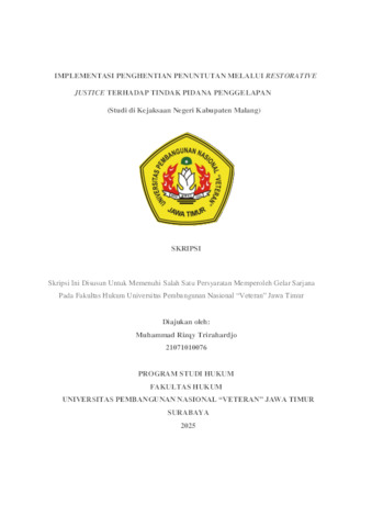 Trirahardjo, Muhammad Rizqy (2025) Implementasi Penghentian Penuntutan Melalui Restorative Justice Terhadap Tindak Pidana Penggelapan (Studi di Kejaksaan Negeri Kabupaten Malang). Undergraduate thesis, UPN Veteran Jawa Timur.