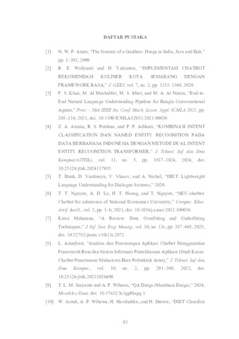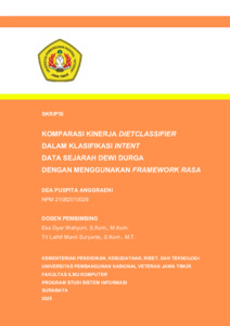 Anggraeni, Dea Puspita (2025) Komparasi Kinerja DIETClassifier dalam Klasifikasi Intent Data Sejarah Dewi Durga dengan Menggunakan Framework Rasa. Undergraduate thesis, UPN Veteran Jawa Timur.