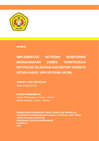 Isnandar, Ahmad Yazid (2025) Implementasi Network Monitoring Menggunakan Zabbix Teintegrasi Notifikasi Telegram dan Report Website. Undergraduate thesis, UPN Veteran Jawa Timur.