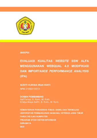 Wijayanti, Auditi Kurnia (2025) EVALUASI KUALITAS WEBSITE SSW ALFA MENGGUNAKAN WEBQUAL 4.0 MODIFIKASI DAN IMPORTANCE PERFORMANCE ANALYSIS (IPA). Undergraduate thesis, UPN Veteran Jawa Timur.
