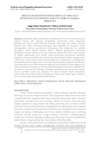 Digitalisasi Sistem Penjadwalan Melalui Pemanfaatan Notion Pada PT Naruna Karya Bersama, 5 (2).
