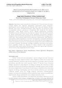 fleksibel, dan rentan terhadap kehilangan data. Kegiatan ini bertujuan untuk meningkatkan efisiensi operasional, transparansi, dan kolaborasi tim melalui penerapan sistem digital berbasis Notion. Metode pelaksanaan mencakup identifikasi masalah melalui survei dan observasi, migrasi data dari sistem manual ke digital, penyesuaian fitur Notion sesuai kebutuhan perusahaan, pelatihan pengguna untuk memastikan pemahaman dan keterampilan dalam menggunakan sistem baru, serta evaluasi untuk menilai efektivitas implementasi. Hasil kegiatan menunjukkan bahwa digitalisasi ini berhasil meningkatkan kecepatan pembaruan
