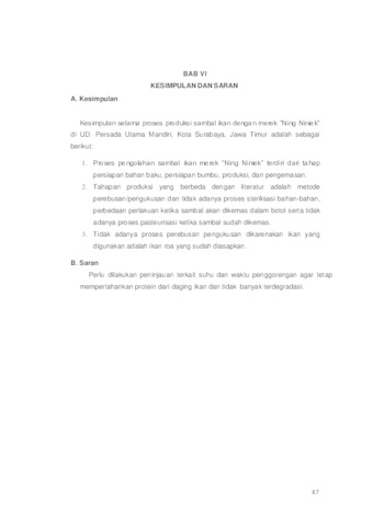 SARTIKA, LUTFITA DEWI PROSES PRODUKSI SAMBAL IKAN KEMASAN NING NINIEK DI UD. PERSADA UTAMA MANDIRI, KECAMATAN WONOCOLO, KOTA SURABAYA, JAWA TIMUR. Project Report (Praktek Kerja Lapang dan Magang). UPN VETERAN JAWA TIMUR. (Unpublished)