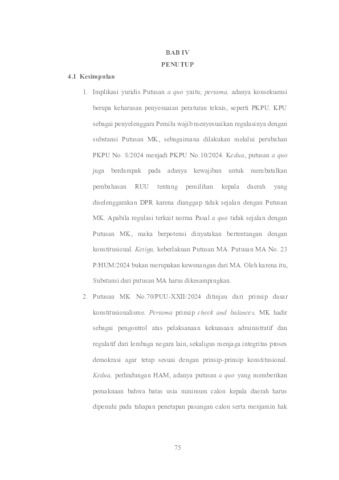 S, Dera Andika (2025) Implikasi Yuridis Putusan Mahkamah Konstitusi Nomor 70/PUU-XXII/2024 terkait Batas Usia Calon Kepala Daerah 2024 dalam Perspektif Konstitusionalisme. Undergraduate thesis, UPN Veteran Jawa Timur.