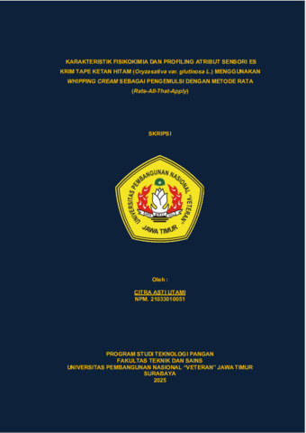 Utami, Citra Asti (2025) Karakteristik Fisikokimia Dan Profiling Atribut Sensori Es Krim Tape Ketan Hitam (Oryzasativa Var. Glutinosa L.) Menggunakan Whipping Cream Sebagai Pengemulsi Dengan Metode Rata (Rate-All-That-Apply). Undergraduate thesis, UPN Veteran Jawa Timur.