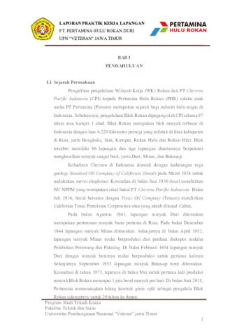 Devika, Sofia Cinintya (2024) Laporan Praktik Kerja Lapangan PT Pertamina Hulu Rokan Duri, Riau. Project Report (Praktek Kerja Lapang dan Magang). UPN Veteran Jawa Timur. (Unpublished)