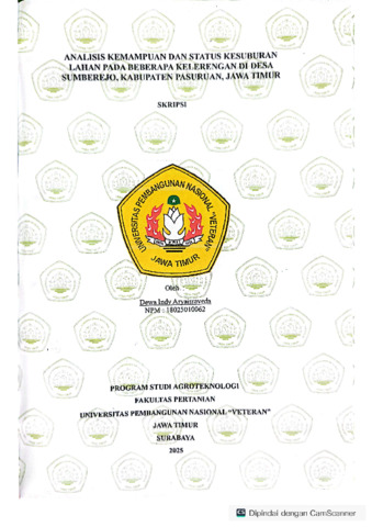 Aryaisraveda, Dewa Indy (2025) Analisis Kemampuan Dan Status Kesuburan Lahan Pada Beberapa Kelerengan Di Desa Sumberejo, Kabupaten Pasuruan, Jawa Timur. Undergraduate thesis, UPN Veteran Jawa Timur.
