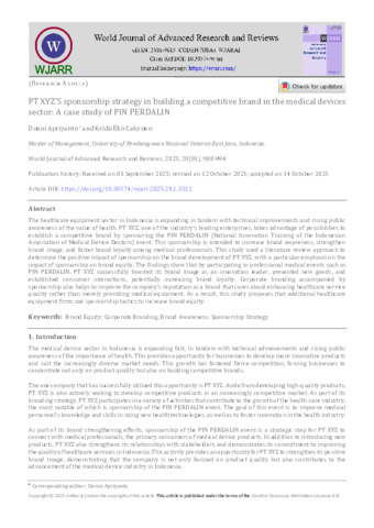 PT XYZ'S sponsorship strategy in building a competitive brand in the medical devices sector: A case study of PIN PERDALIN.