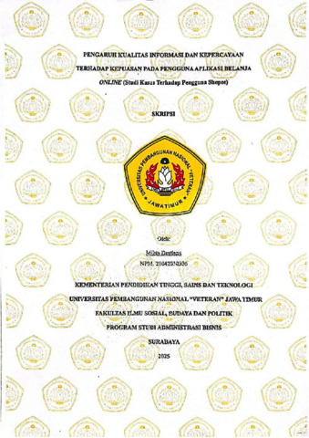 Destiana, Mihta (2025) PENGARUH KUALITAS INFORMASI DAN KEPERCAYAAN TERHADAP PENGGUNA APLIKASI BELANJA ONLINE (Studi Kasus Terhadap Pengguna Shopee). Undergraduate thesis, UPN "Veteran" Jawa Timur.