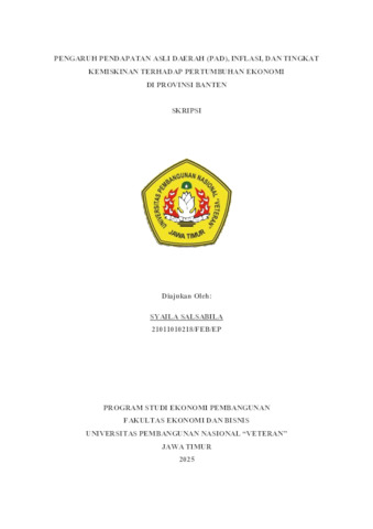 Salsabila, Syaila (2025) Pengaruh Pendapatan Asli Daerah (PAD), Inflasi, dan Tingkat Kemiskinan Terhadap Pertumbuhan Ekonomi di Provinsi Banten. Undergraduate thesis, UPN "Veteran" Jawa Timur.