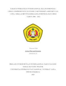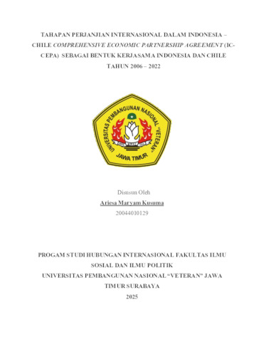 Kusuma, Ariesa Maryam (2025) Tahapan Perjanjian Internasional dalam Indonesia – Chile Comprehensive Economic Partnership Agreement (IC-CEPA) Sebagai Bentuk Kerjasama Indonesia dan Chile Tahun 2006 – 2022. Undergraduate thesis, UPN Veteran Jawa Timur.