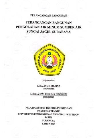 Bilbina, Icha Ayoe and Ningrum, Adelia Dwi Kusuma (2025) Perancangan Bangunan Pengolahan Air Minum Sumber Air Sungai Jagir, Surabaya. Technical Report. Universitas Pembangunan Nasional "Veteran" Jawa Timur. (Unpublished)