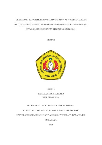 Siahaya, James Arthur (2025) Kerjasama Republik Indonesia dan Papua New Guinea dalam Aktivitas Masyarakat Perbatasan Pada Wilayah Lintas Batas : Special Arrangements RI dan PNG (2014-2024). Undergraduate thesis, UPN Veteran Jawa Timur.