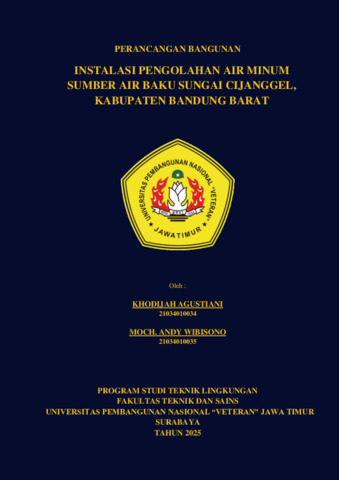 Agustiani, Khodijah and Wibisono, Moch. Andy (2025) Instalasi Pengolahan Air Minum Sumber Air Baku Sungai Cijanggel, Kabupaten Bandung Barat. Undergraduate thesis, UPN Veteran Jawa Timur.