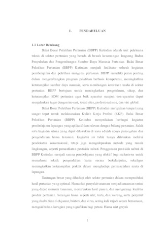 POSEDUR PEMBUATAN DAN PENGAPLIKASIAN PESTISIDA NABATI UNTUK MENGENDALIKAN HAMA DI BALAI BESAR PELATIHAN PERTANIAN (BBPP) KETINDAN