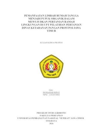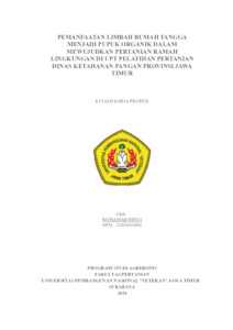 Rifai, Mohamad (2025) PEMANFAATAN LIMBAH RUMAH TANGGA MENJADI PUPUK ORGANIK DALAM MEWUJUDKAN PERTANIAN RAMAH LINGKUNGAN DI UPT PELATIHAN PERTANIAN DINAS KETAHANAN PANGAN PROVINSI JAWA TIMUR. Project Report (Praktek Kerja Lapang dan Magang). Fakultas Pertanian UPN VETERAN JAWA TIMUR, Surabaya. (Unpublished)
