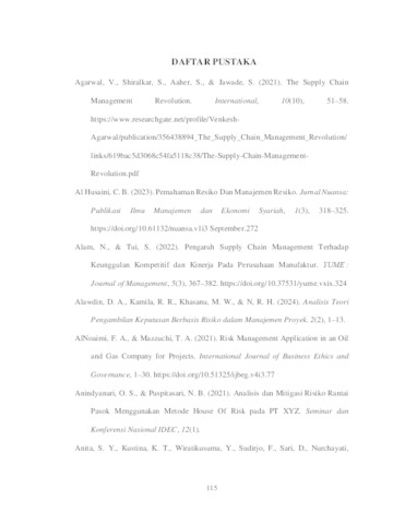 Primadhiya, Fairuzzayyan (2025) Mitigasi Risiko Supply Chain Di CV. Pelita Mandiri dengan Metode House Of Risk (HOR) dan Bow-Tie Analysis (BTA). Undergraduate thesis, UPN Veteran JawaTimur.