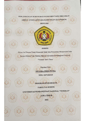 Putra, Difanda Cerio (2025) PERLINDUNGAN HUKUM BAGI KONSUMEN YANG DIRUGIKAN AKIBAT OVERCLAIM PADA KANDUNGAN ZAT PRODUK SKINCARE. Undergraduate thesis, UPN "VETERAN" JAWA TIMUR.